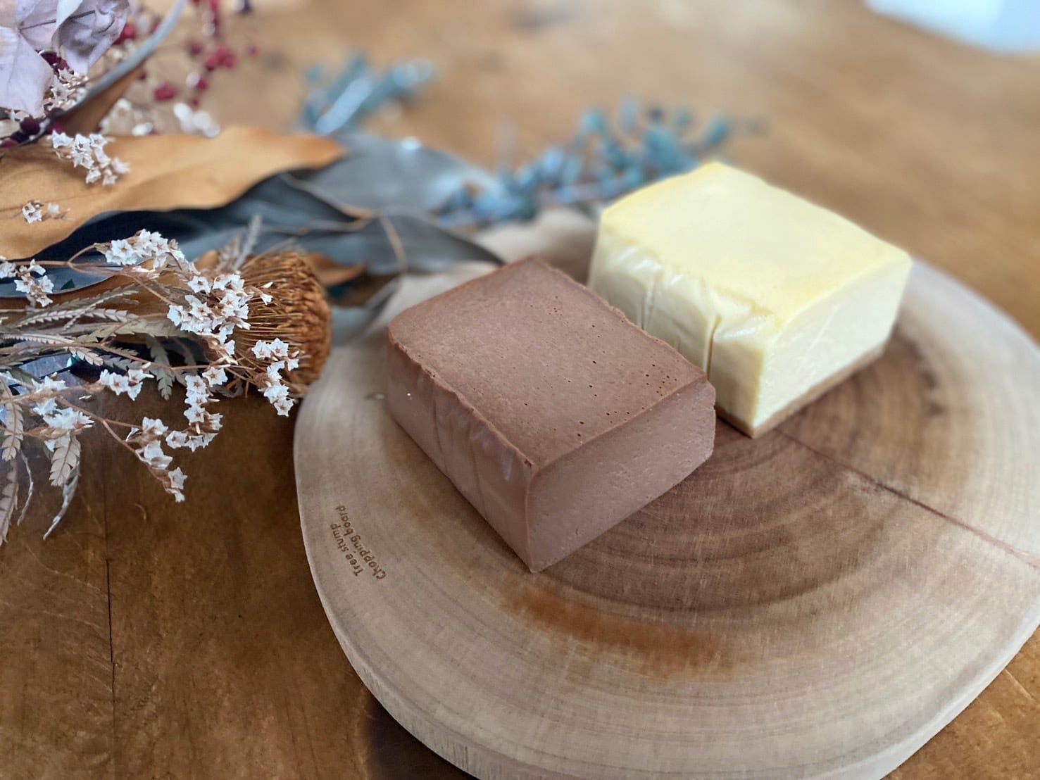 ・・・・・・・・・・・ ハグチーチョコで アイ・LOVE・YOUを ・・・・・・・・・・・ 《ハグしてチョコテリーヌ》 大好きな人にハグしてほしいを届ける甘え上手なチョコチーズテリーヌが登場。 甘さを控えたチーズの生地とチョコの組み合わせは、言わずもがな相性バツグン。 ずっしり濃厚でありながら生チョコのようななめらかな口溶けとカカオの香り。ダイレクトにチョコを感じられるようボトムなしのテリーヌ仕立てです。大人ビターになり過ぎないので、お子様には勿論、チョコ好きにも愛される一品。 大好きな人がとろける笑顔になったなら。。恋の魔法がかかるかも。 定番の《ハグするチーズケーキ》とのペアセットが相思相愛を演出いたします。 バレンタインデー・ホワイトデーにピッタリなチーズケーキに仕上がりました。 ◆包装について バガスBOX(リーフ付) 赤ちゃんを優しく包むように『おくるみ包装』されたチーズケーキには、メッセージ性をもたせてあり、リーフ(バガスBOX)orミニブーケ(ラブBOX)が添えられます。パッケージから伝わるぬくもりは、ハグするキモチそのもの。丁寧な包装は、ご自身へのご褒美、大切な方への贈り物にぴったり。それぞれのシーンに寄り添います。 ◆チーズケーキについて 大量生産の均一さと違ってそれぞれに異なり、寧ろ、そこが唯一無二で愛おしい。予約を頂いてから、お作りすることで世界でたった一人のあなただけの特別なチーズケーキが出来上がります。 ◆賞味期限について 商品は冷凍か冷蔵をお選び頂けます。 【冷凍で3週間】 ※解凍後は、冷蔵庫で保管しお早めにお召し上がり下さい。 【冷蔵で5日間】 ※食べきれない分は冷凍保存し、 解凍後は、その日のうちにお召し上がり下さい。 ◆原材料について 下記の材料を使用しています。 《ハグしてチョコテリーヌ》 クリームチーズ、生クリーム、卵、チョコレート、グラニュー糖、コーンスターチ 【特定原材料】乳・卵 《ハグするチーズケーキ》 クリームチーズ、生クリーム、サワークリーム、ギリシャヨーグルト、グラニュー糖、卵、バター、ホワイトチョコレート、ビスケット、コーンスターチ、バニラエッセンス、レモン汁 【特定原材料】乳・卵 ◆原産国・原産地について 国産 主となる材料の乳製品はすべて北海道産。 小麦は一切使わず、グルテンフリー。 着色料・防腐剤不使用。 ◆【ハーフサイズ】内容量について プレーン(約300g)、チョコ(約240g)と、丁度よいサイズ感。 ※3ピースor4ピースに切り分けお召し上がり下さい。(推奨) ※【オプション】プレーン・チョコそれぞれ3ピースずつカット可能。 都度、食べたい分だけカットして食べるもよし。おすそ分けで贈るもよし。季節の果物や、生クリームでアレンジして贅沢プレートにしてもよし。紅茶・コーヒーは勿論、ワインとのペアリングもオススメ。ご家族で。自分に。大切な人へ。大好きな人と。素敵なハグタイムをお過ごし下さい。 ****************************** ※こちらは店舗に取りに来て頂くことで 送料無料になる商品です。 お渡し日を過ぎてもご来店のない場合は、 キャンセル扱いとなりますのでご注意下さい。 ******************************