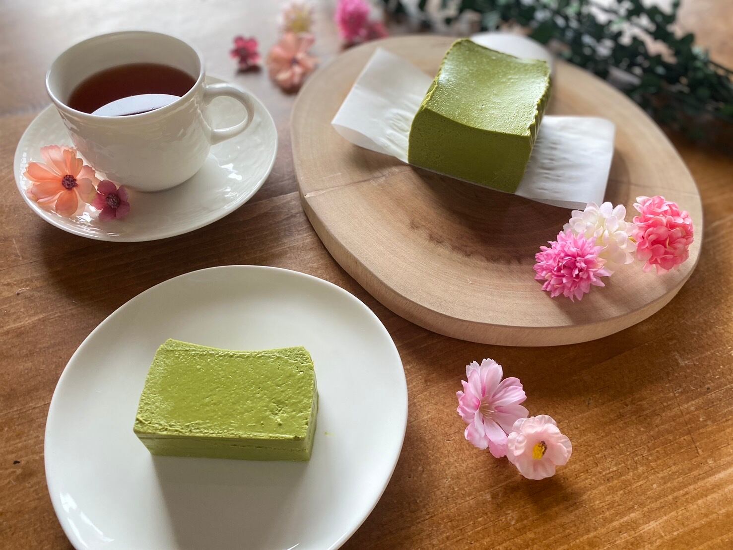 言わずもがな、チーズケーキとの相性も良く、風味豊かな香りとコクのある濃厚な味わいを堪能して頂けます。プレーン味同様に甘すぎず、不思議なほどに苦みも抑えられた、なめらか食感。ズッシリなのにぺろりと頂ける食べやすさです。ほのかに感じる爽やかなほろ苦さが、まろやかに口の中で溶け合って、時々たべたいGreenスイーツにピッタリ。