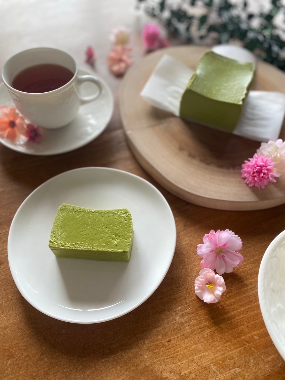 せっかくなら緑茶・抹茶等のグリーンティーと合わせた、緑に包まれる時間をお愉しみ下さい。花見酒のお供にも美味しく召し上がって頂けます。