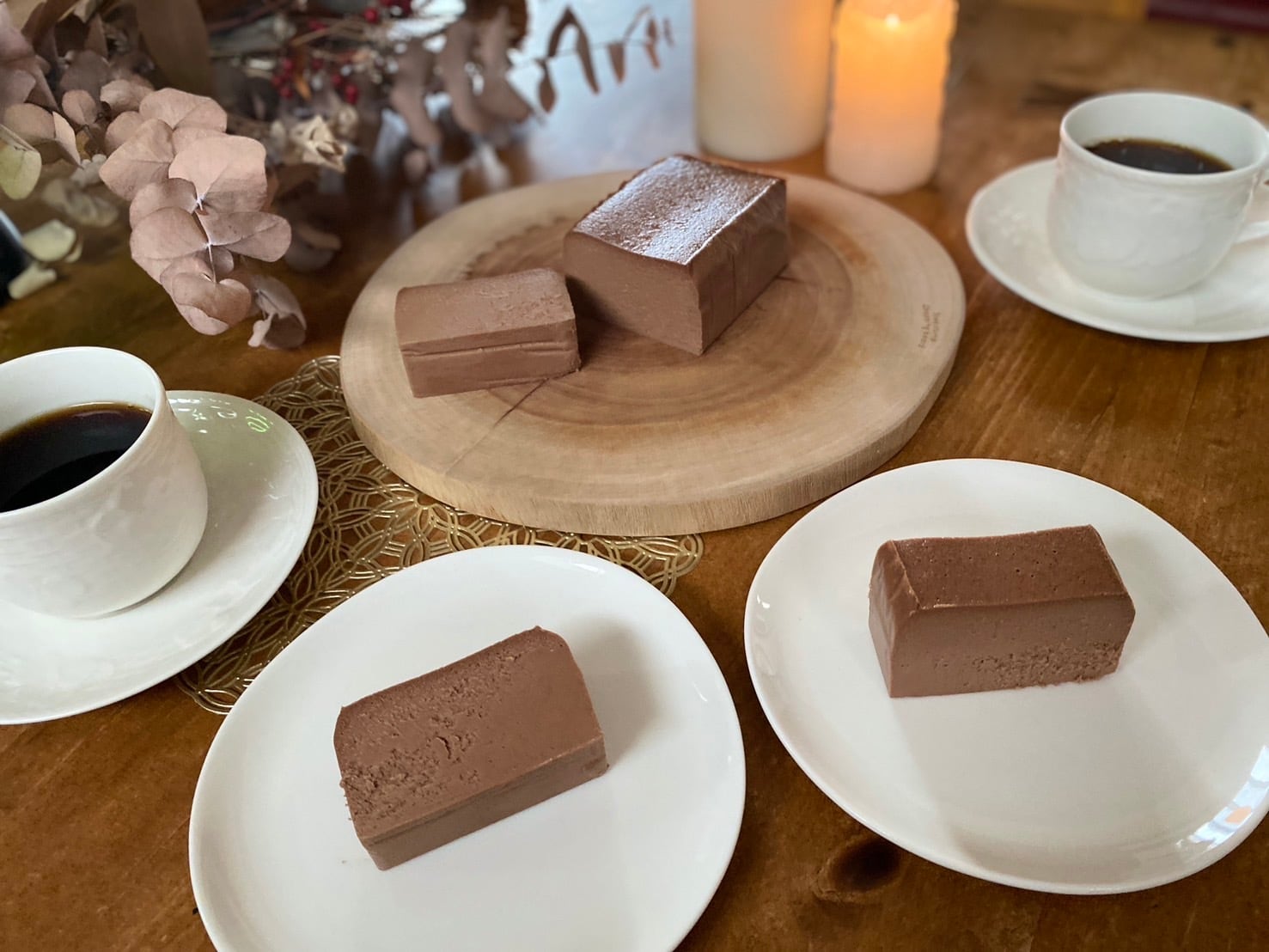 ずっしり濃厚でありながら生チョコのようななめらかな口溶けとカカオの香り。ダイレクトにチョコを感じられるようボトムなしのテリーヌ仕立てです。大人ビターになり過ぎないので、お子様には勿論、チョコ好きにも愛される一品。