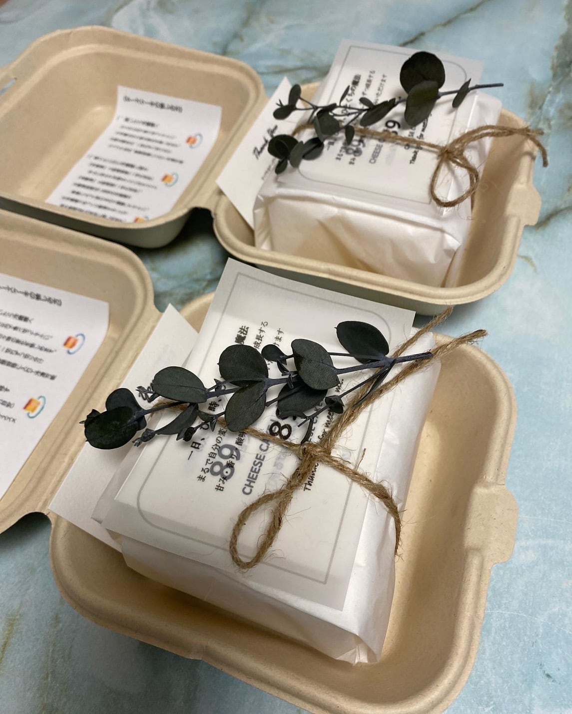 赤ちゃんを優しく包むように『おくるみ包装』されたチーズケーキには、メッセージ性をもたせてあり、リーフが添えられます。パッケージから伝わるぬくもりは、ハグするキモチそのもの。丁寧な包装は、ご自身へのご褒美、大切な方への贈り物にぴったり。それぞれのシーンに寄り添います。