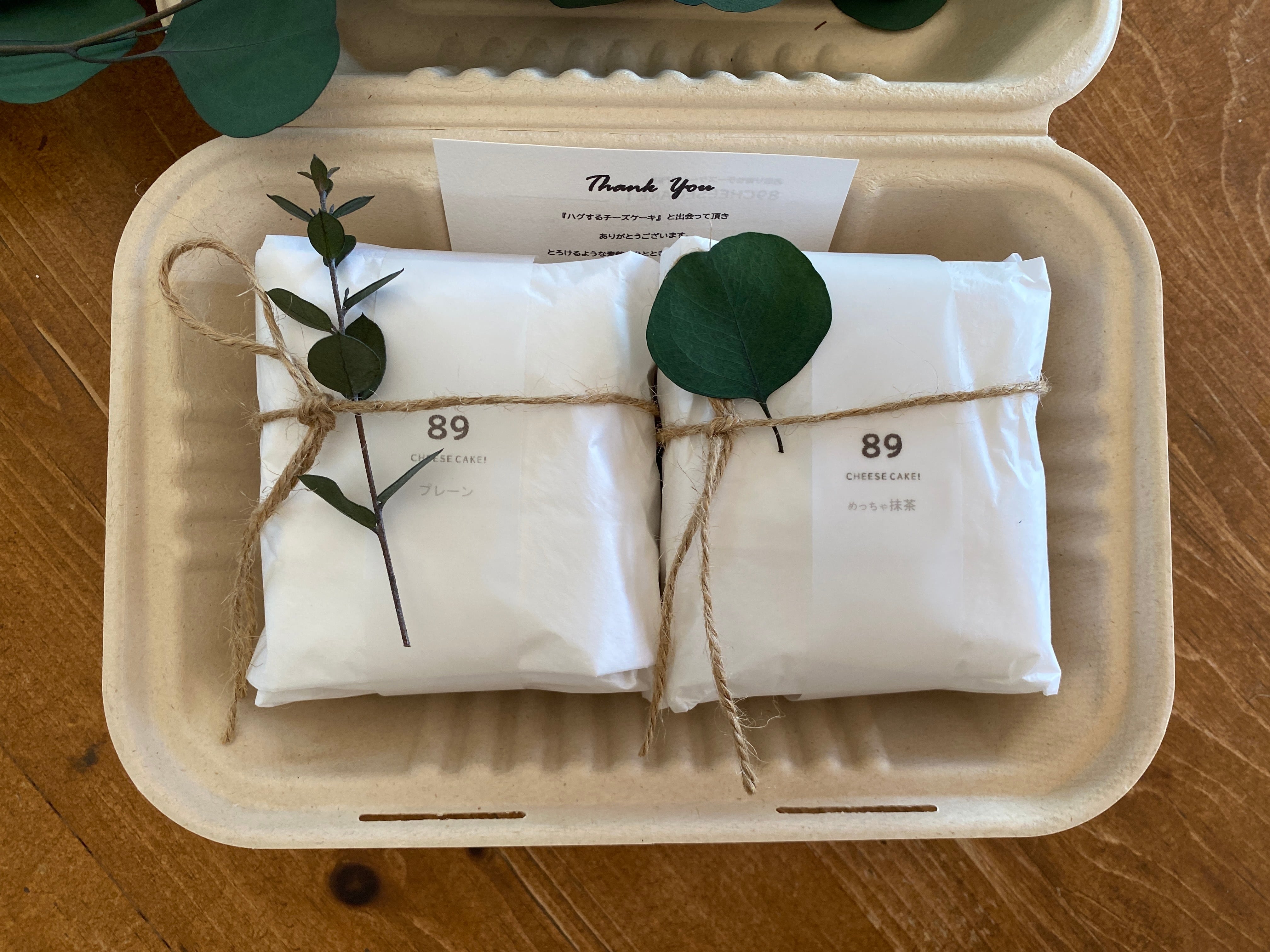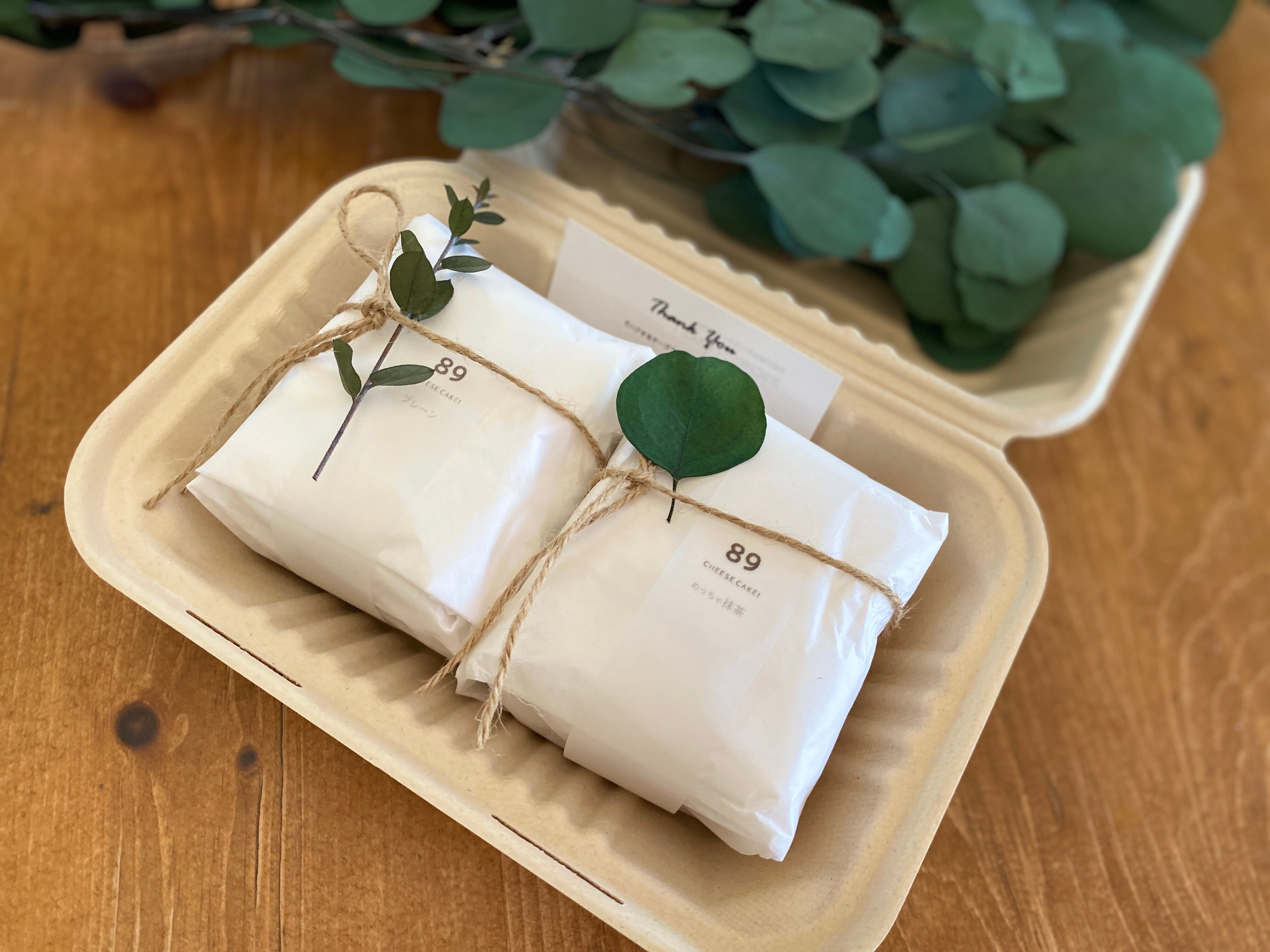 赤ちゃんを優しく包むように『おくるみ包装』されたチーズケーキには、メッセージ性をもたせてあり、リーフ(バガスBOX)orミニブーケ(ラブBOX)が添えられます。パッケージから伝わるぬくもりは、ハグするキモチそのもの。丁寧な包装は、ご自身へのご褒美、大切な方への贈り物にぴったり。それぞれのシーンに寄り添います。